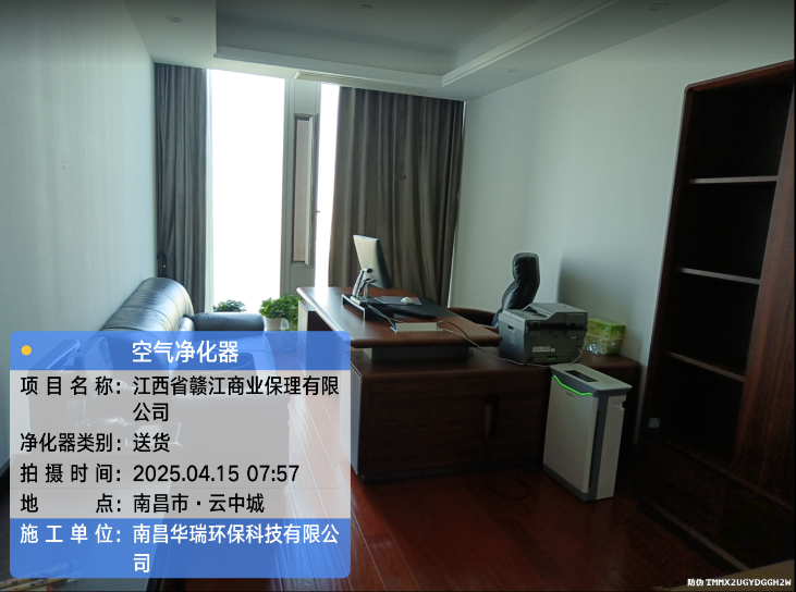 項(xiàng)目名稱:江西省贛江商業(yè)保險(xiǎn)有限公司空氣凈化器安裝施工日期:2025.4.15