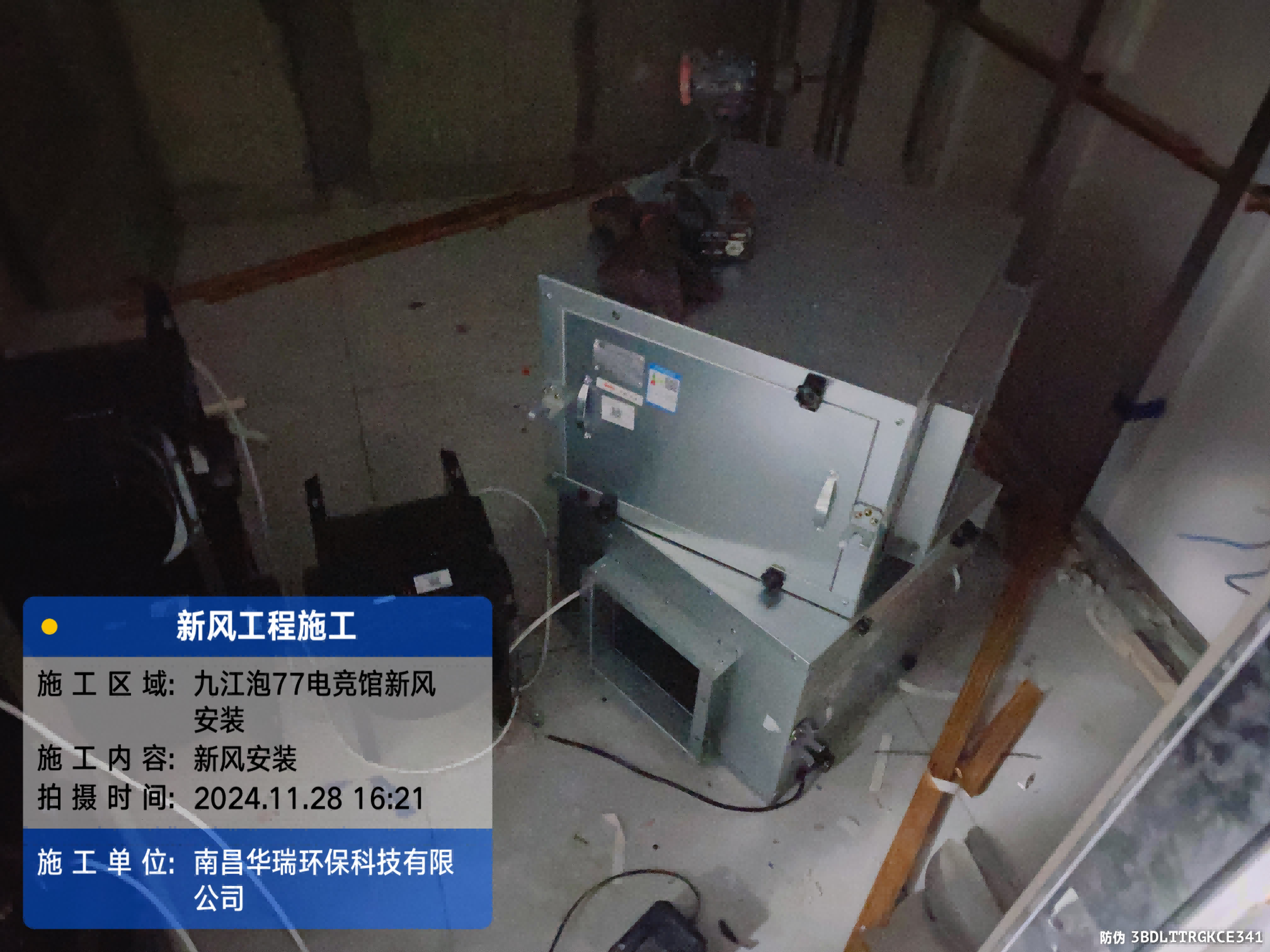 項(xiàng)目名稱:新風(fēng)安裝九江泡77電競(jìng)館施工日期:2024.11.28