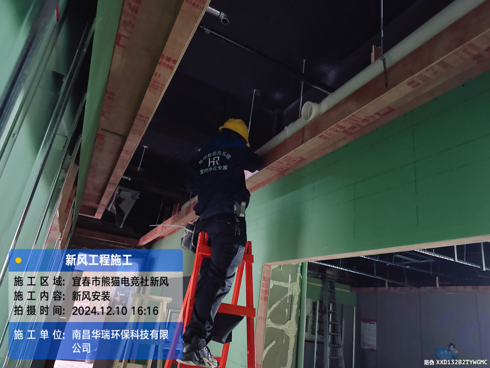 項(xiàng)目名稱:新風(fēng)安裝宜春市熊貓電競(jìng)施工日期:2024.12.10