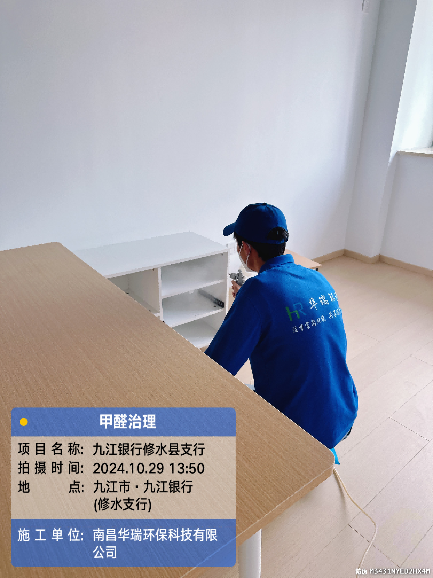 項目名稱:甲醛治理九江銀行修水縣支行施工日期:2024.10.29