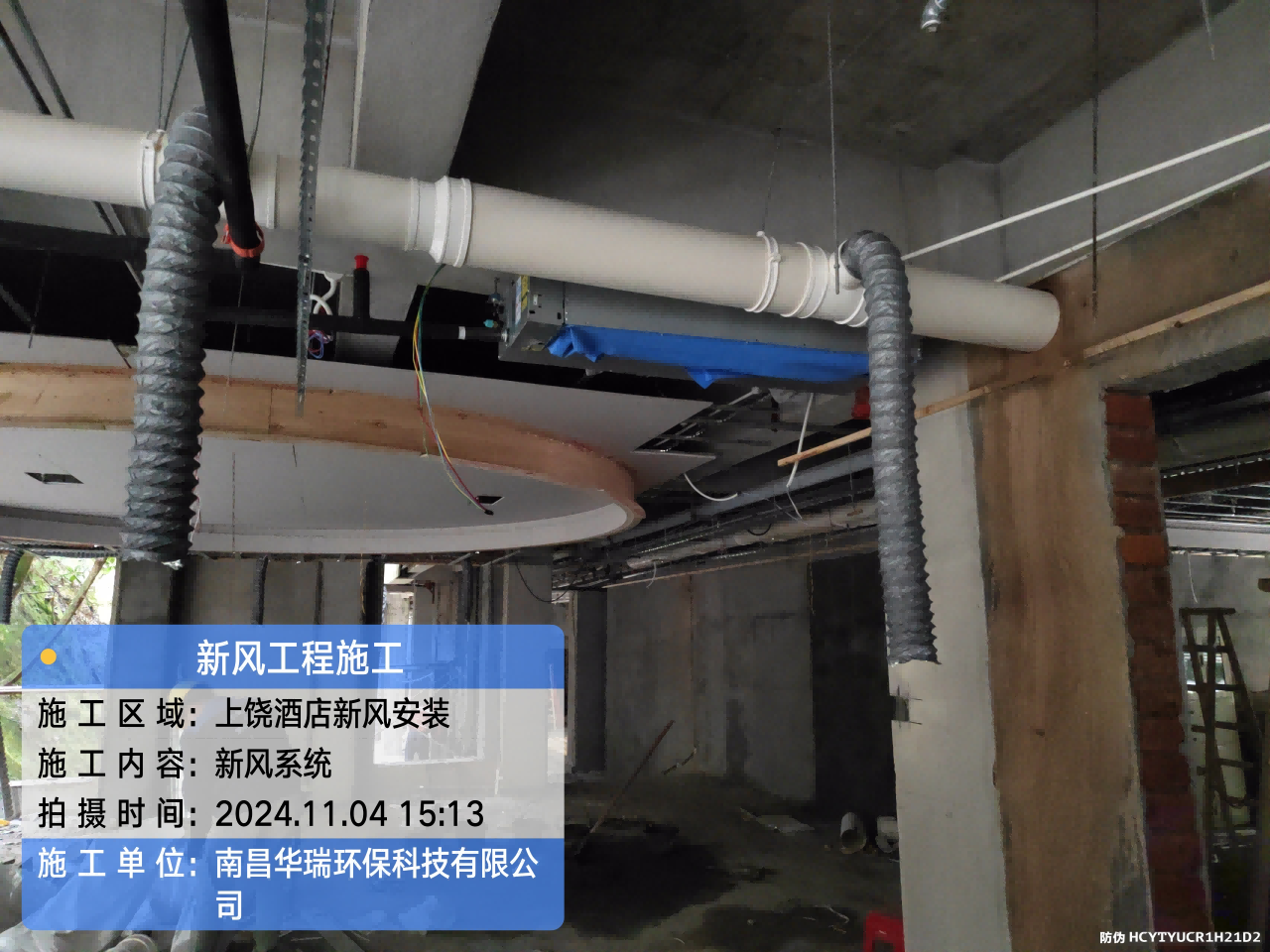 項目名稱:新風(fēng)安裝上饒酒店施工日期:2024.11.3