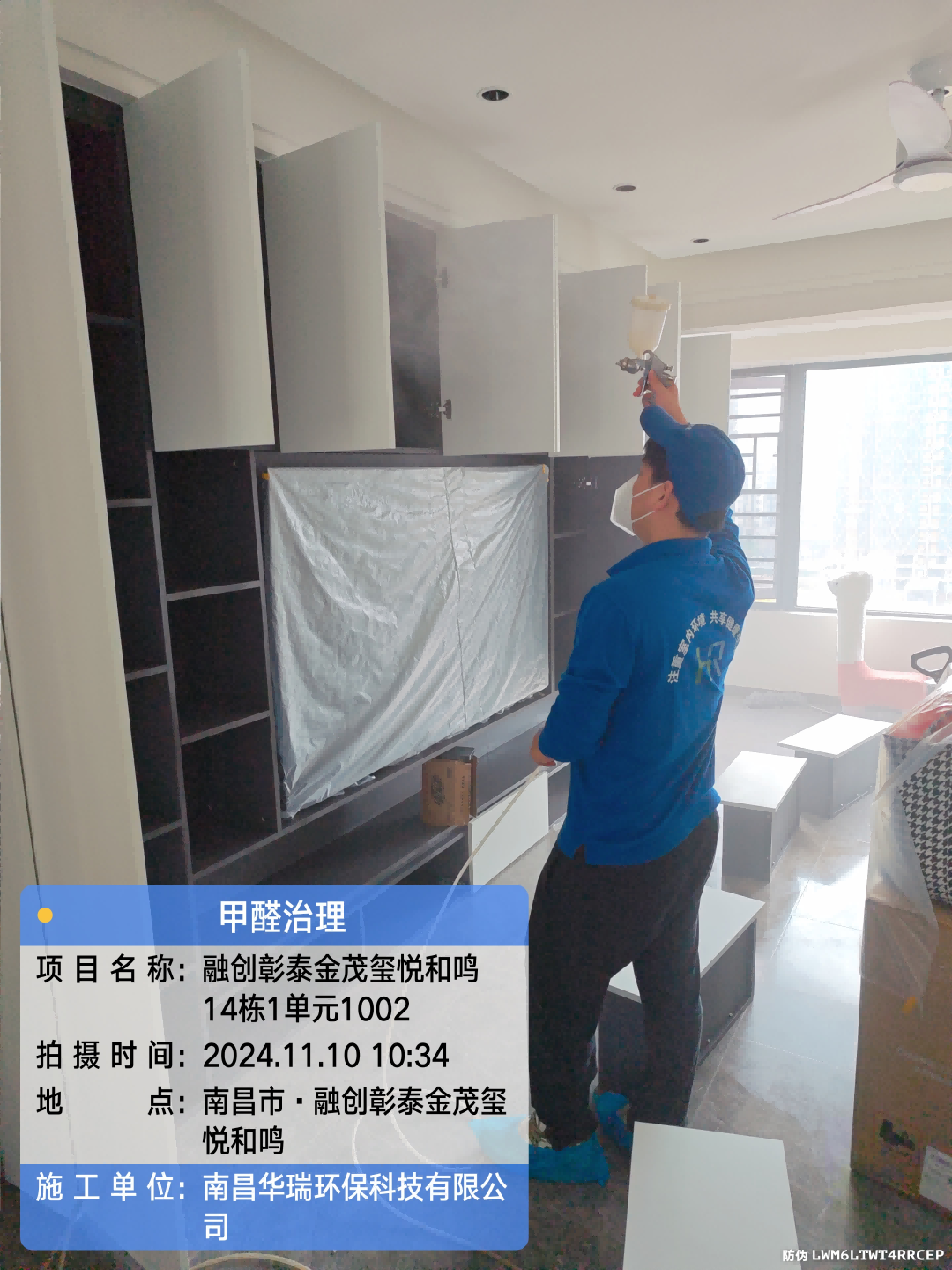 項目名稱:甲醛治理象湖力高君譽城施工日期:2024.11.22