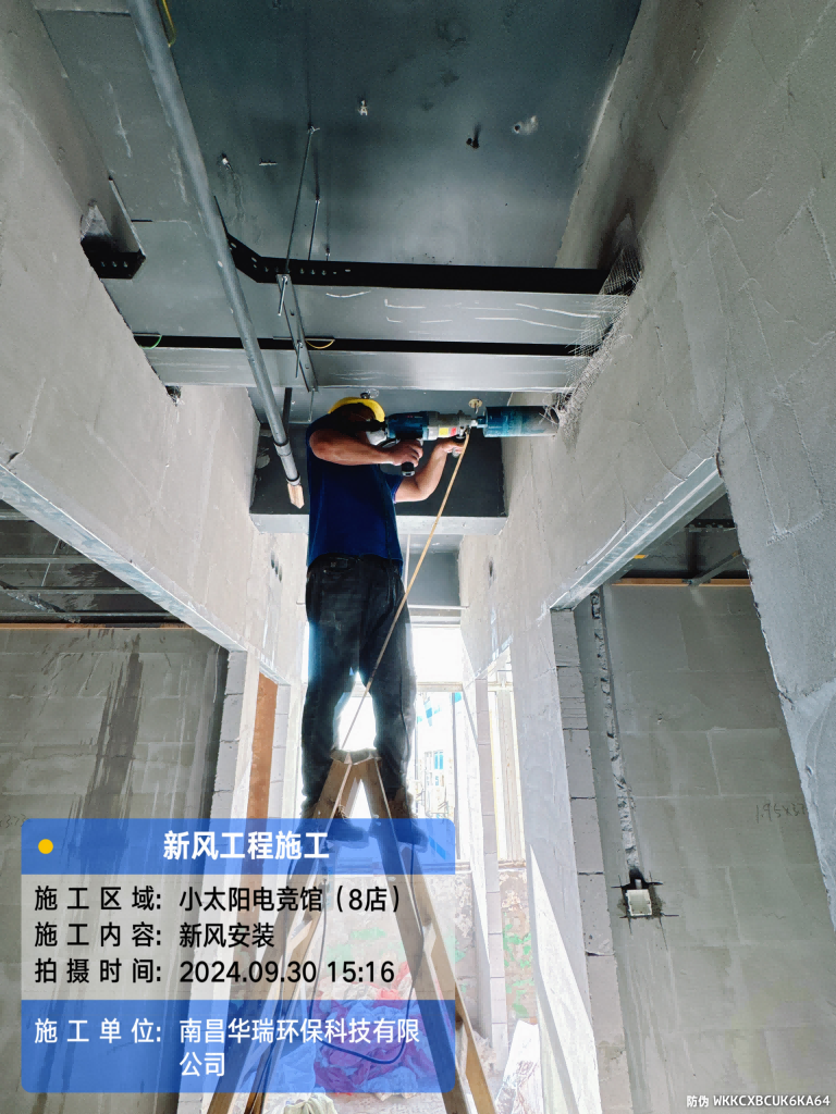 項(xiàng)目名稱:新風(fēng)安裝小太陽電競(jìng)館施工日期:2024.9.30