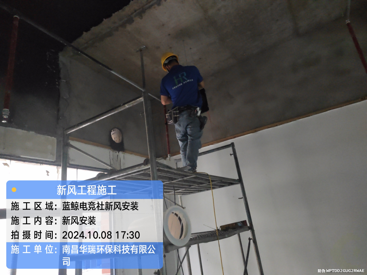 項(xiàng)目名稱:新風(fēng)安裝藍(lán)鯨電競(jìng)社施工日期:2024.10.8-10.9