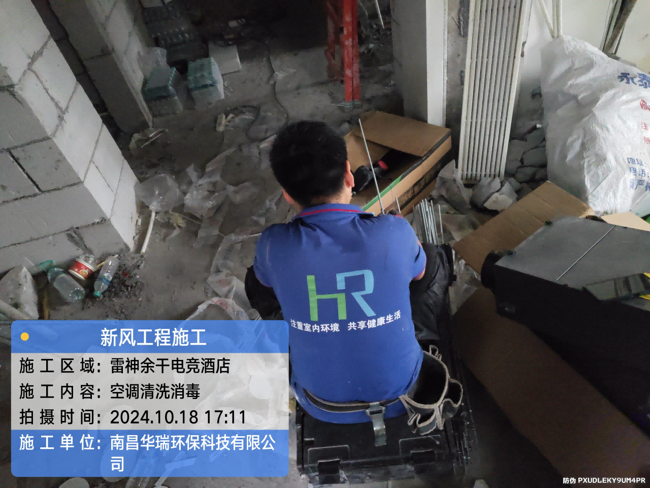 項(xiàng)目名稱:新風(fēng)安裝雷神余干電競(jìng)酒店施工日期:2024.10.18-10.19