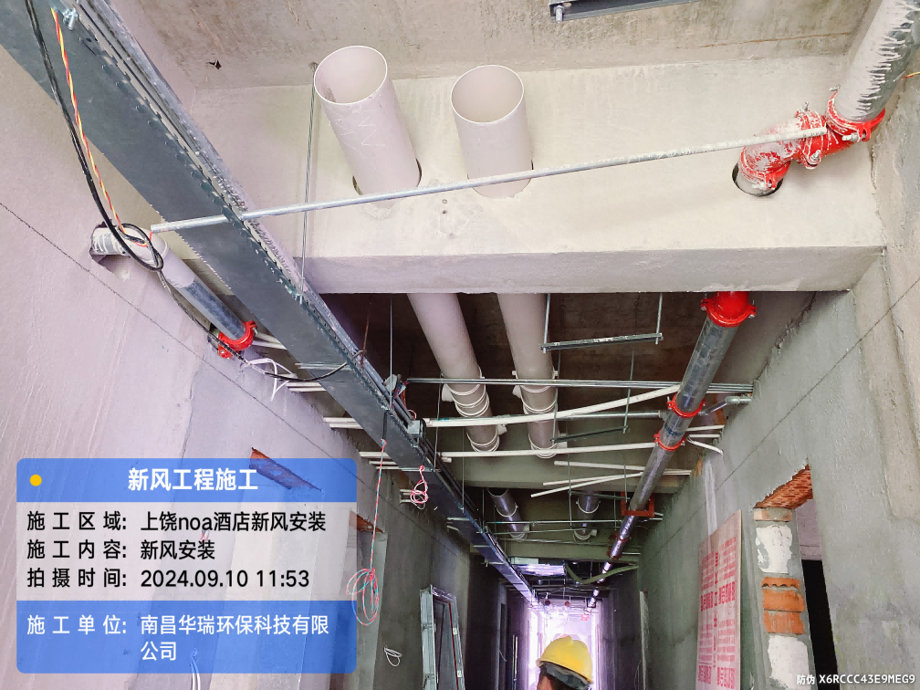 項(xiàng)目名稱:新風(fēng)安裝上饒noa酒店施工日期:2024.9.10-9.11