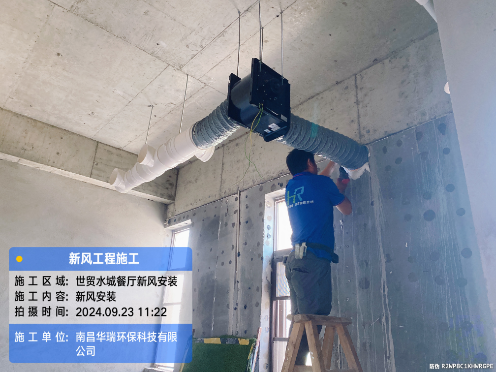 項(xiàng)目名稱:新風(fēng)安裝世貿(mào)水城餐廳施工日期:2024.9.22