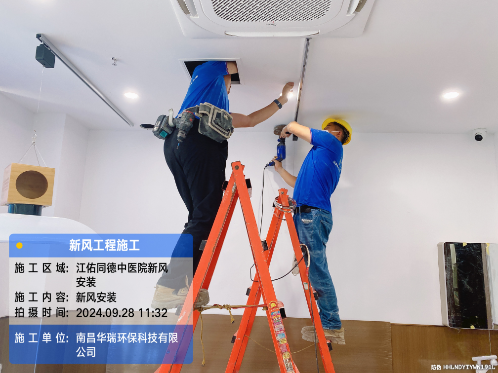 項(xiàng)目名稱:新風(fēng)安裝江佑同德中醫(yī)院施工日期:2024.9.28