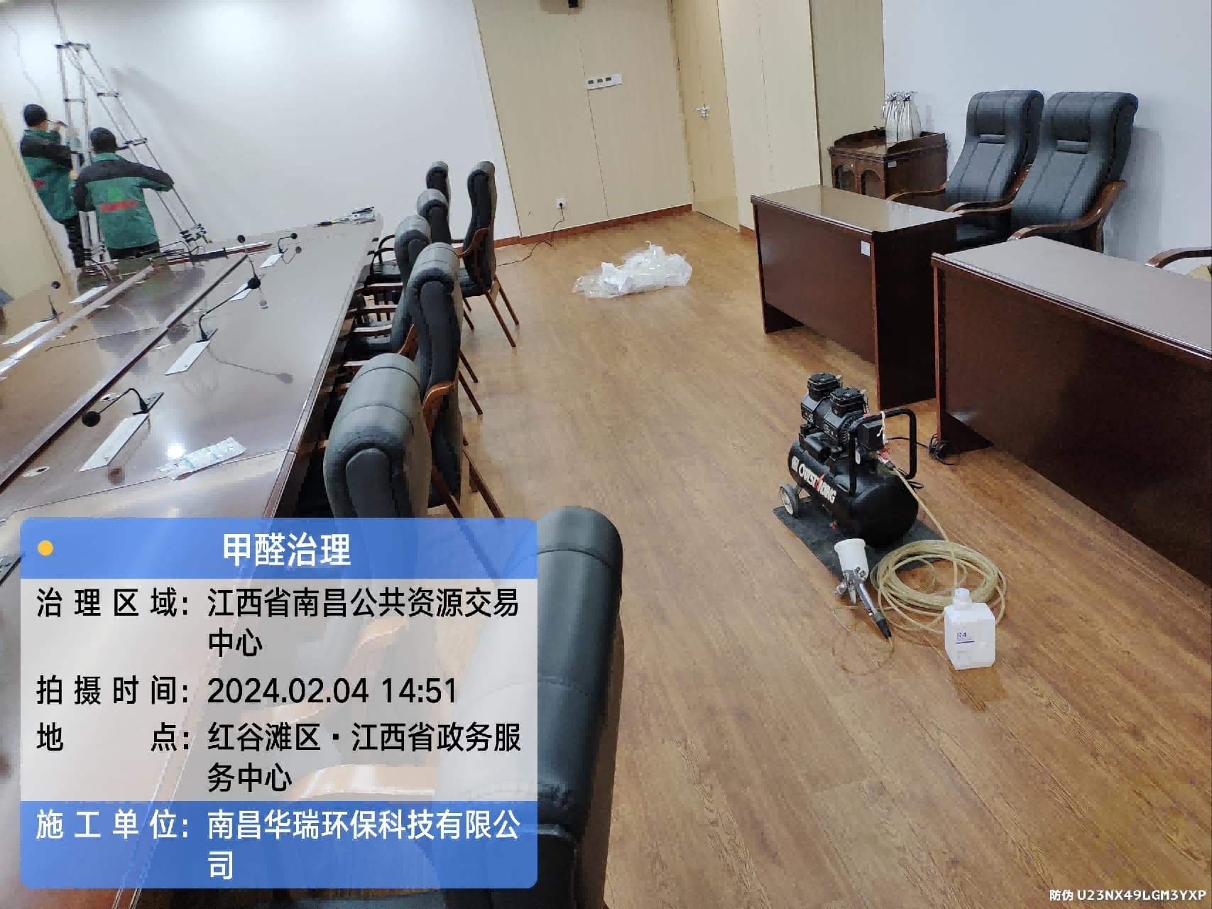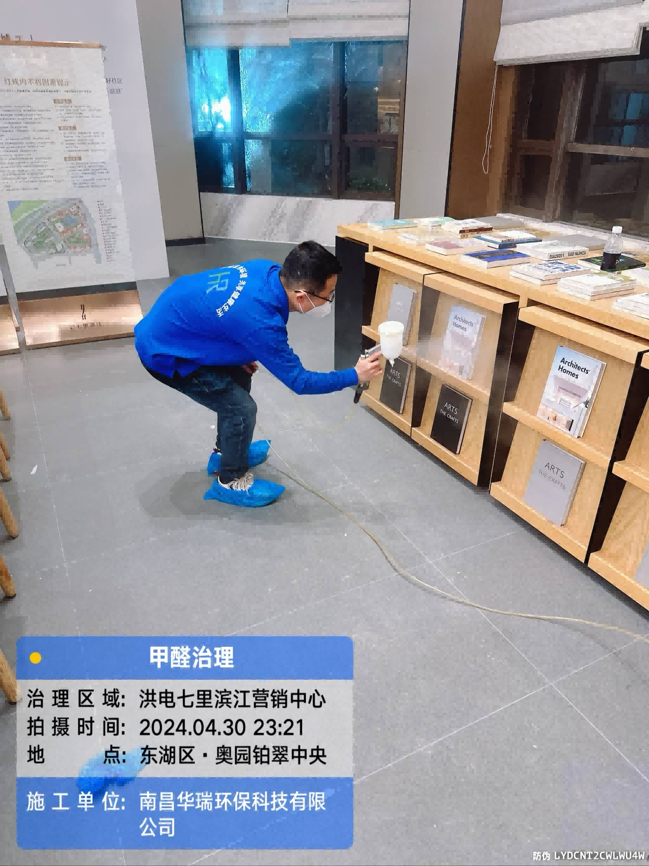 項(xiàng)目名稱:甲醛治理洪電七里濱江營銷中心施工日期:2024.4.30-5.1