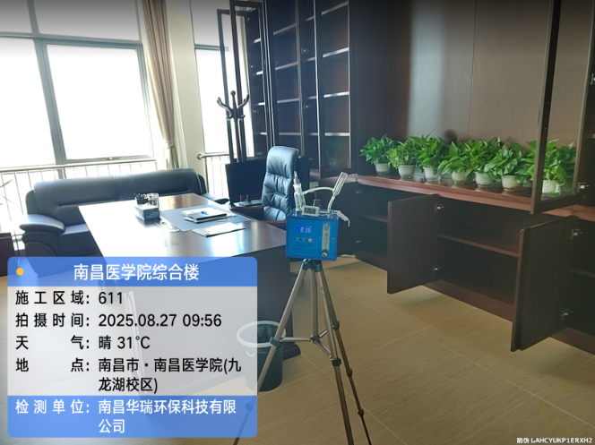項(xiàng)目名稱:南昌醫(yī)學(xué)院(九龍湖校區(qū))甲醛檢測施工時(shí)間:2025年8月27日
