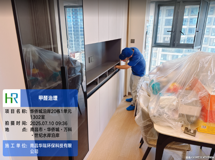 項目名稱:華僑城泊岸20棟1單元1302甲醛治理施工日期:2025.7.10
